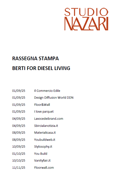 25/01/2025 BUILDNEWS - Reinventare il parquet a spina di pesce DESIGN DIFFUSION - Berti pavimenti legno tra tradizione e innovazione LA VOCE DEI BRAND - Innovazione nel parquet, Berti presenta il pavimento a spina di pesce curva LULOP - Berti ...