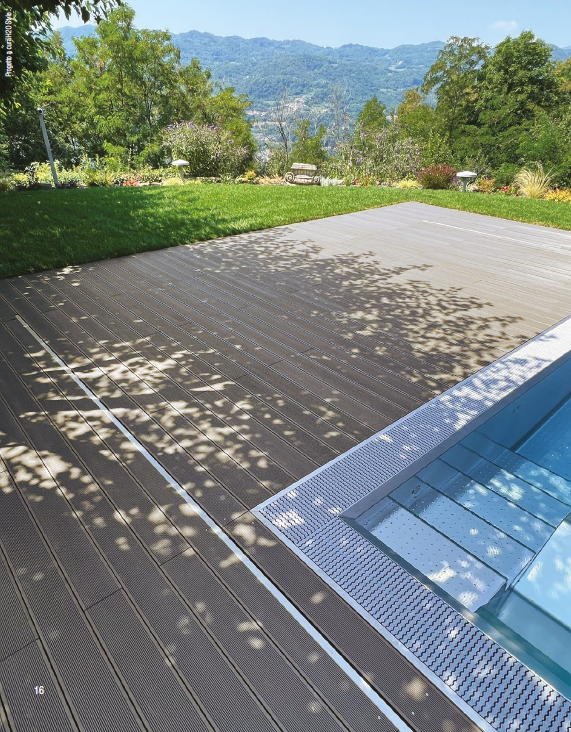 - PRATICO - riduce la manutenzione tipica del decking in legno; in particolare il rivestimento in polimero antimacchia delle collezioni PRO e TECNO offre una resistenza aggiuntiva alle macchie, usura del tempo e viraggio colore, garantendo una stabilità cromatica
